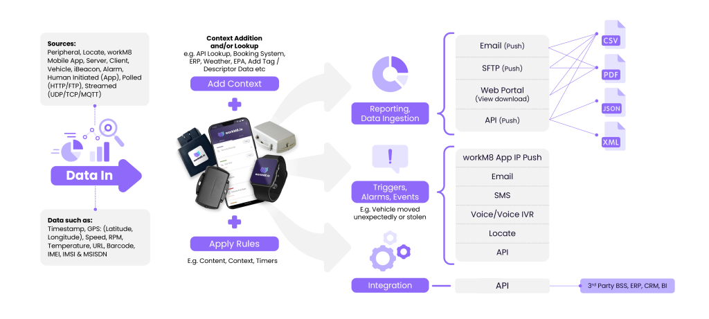 The workM8 platform provides a range of ready-built IoT solutions as well as tools for our carrier partners and re-sellers to onboard new ‘sensor’ hardware, configure workflows and go to market with a broad range of end-to-end (branded) IoT solutions.